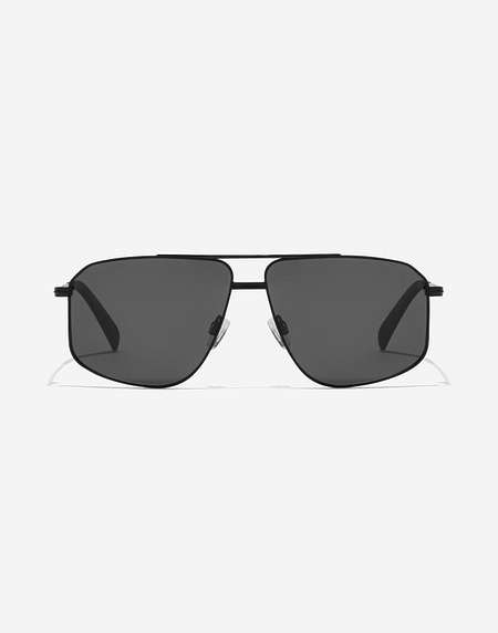 The essence of this model is the variety of details, engravings, and lines at the bridge level. Unisex design with stylized black stainless-steel frame and striking features in an angular shape with darkened polarized lenses.