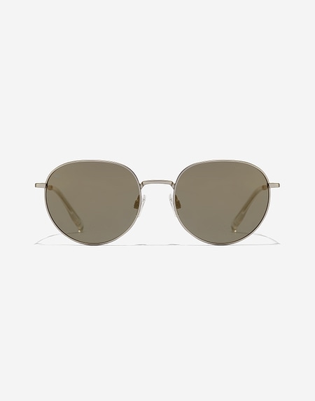These understated glasses with their matte-finish silver metal frame and round beige polarized lenses add a touch of the contemporary to your look. The transparent temple tips complete their elegant simplicity.