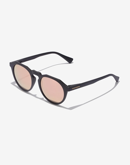 συνδυάζει ένα σκελετό με ένα τελείωμα μαύρο ματ με φακούς καθρέπτη rose gold, ένα απαραίτητο αξεσουάρ μόδας γι΄ αυτή τη σεζόν.