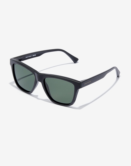 The ONE LS is one of our all-time best-selling designs. This model, from the Made in Spain collection, has a matte black frame with gold logos on the temples, and the POLARIZED lenses are alligator green.